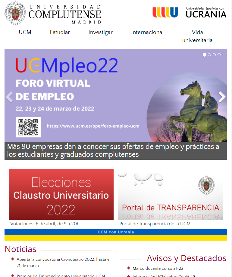 Accedemos a la Web UCM desde distintos dispositivos con diferentes tamaños y resoluciones de pantalla (teléfonos móviles, tablets, portátiles...).